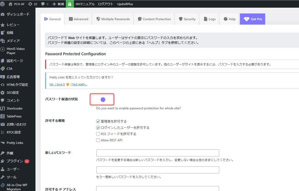 パスワードのプラグイン
